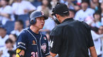 [OSEN=창원, 이석우 기자] 24일 창원 NC파크에서 2023 신한은행 SOL KBO리그 NC 다이노스와 두산 베어스의 경기가 열렸다. 두산 베어스 정수빈이 5회초 삼진 아웃당하자 구심에게 볼 판정에 대해 어필하고 있다. 2023.09.24 / foto0307@osen.co.kr