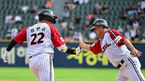 [OSEN=문학, 조은정 기자]24일 오후 인천 문학동 SSG랜더스필드에서 2023 신한은행 SOL KBO리그 SSG 랜더스와 롯데 자이언츠의 경기가 열렸다.5회초 롯데 선두타자 한동희가 달아나는 우월 솔로 홈런을 날린 뒤 이종운 감독의 환영을