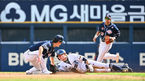 [OSEN=창원, 이석우 기자] 24일 창원 NC파크에서 2023 신한은행 SOL KBO리그 NC 다이노스와 두산 베어스의 경기가 열렸다. NC 다이노스 박민우가 3회말 2사 1루 마틴 타석때 2루 도루 아웃되고 있다. 2023.09.24 / foto0307@osen.co.kr