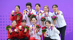 [OSEN=항저우(중국), 김성락 기자] 24일 오후 중국 푸양 인후 스포츠센터에서 '제19회 항저우아시안게임' 근대5종 여자 결승전 경기가 열렸다.여자부 단체 중국(금메달), 일본(은메달), 동메달을 획득한 한국 대표팀 김세희, 성승민,