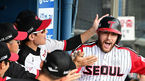 [OSEN=잠실, 지형준 기자] 24일 오후 서울 잠실야구장에서 ‘2023 신한은행 SOL KBO리그’ LG 트윈스와 한화 이글스의 경기가 열렸다.4회말 2사에서 LG 오스틴이 중월 솔로포를 날리며 더그아웃에서 코칭스태프와 기뻐하고 있다. 2023.09