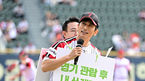 [OSEN=잠실, 지형준 기자] 24일 오후 서울 잠실야구장에서 ‘2023 신한은행 SOL KBO리그’ LG 트윈스와 한화 이글스의 경기가 열렸다.배우 차인표가 시구를 위해 마운드에 오르며 인사를 하고 있다. 2023.09.24 /jpnews@osen.co.kr