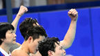 [OSEN=항저우(중국), 김성락 기자] 25일 오후 올림픽 스포츠센터 수영장에서 '제19회 항저우아시안게임' 수영 남자 계영 800m 결승전 경기가 열렸다.경기 종료 후 한국 대표팀 선수들이 기뻐하고 있다. 이날 한국 대표팀은 양재훈~이