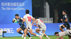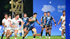 [OSEN=항저우(중국), 최규한 기자] 26일 오후(한국시간) 중국 항저우 항저우사범대 창첸 캠퍼스 경기장에서 ‘2022 항저우 아시안게임’ 7인제 럭비 결승 대한민국과 홍콩의 경기가 열렸다.후반 한국 선수들이 돌파를 시도하고 있