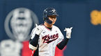 [OSEN=고척,박준형 기자] 16일 서울 고척스카이돔에서 항저우 아시안게임 야구대표팀과 상무의 연습경기가 진행됐다.6회말 2사 1,2루 대표팀 문보경이 선취 2타점 적시타를 날리고 세리머니를 하고 있다. 2023.09.26 / soul1014@osen.co.kr