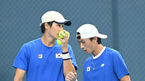 [OSEN=항저우(중국), 김성락 기자] 27일 오후 중국 항저우 올림픽 스포츠센터 테니스장에서 '제19회 항저우아시안게임' 테니스 남자 복식 대한민국과 일본의 8강전 경기가 열렸다. 1세트 대한민국 권순우, 홍성찬이 이야기를 나누