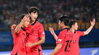 [OSEN=진화(중국), 최규한 기자] 27일 오후 중국 진화 스포츠센터 스타디움에서 '제19회 항저우아시아게임' 남자축구 16강전 대한민국과 키르기스스탄의 경기가 열렸다.전반 한국 정우영이 팀 두번째 골을 작렬시킨 뒤 동료들과 기