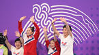 [OSEN=항저우(중국), 김성락 기자] 28일 오후 중국 항저우시 황룽 스포츠센터 체조경기장에서 '제19회 항저우아시안게임' 기계체조 여자 도마 결승전 경기가 열렸다.경기 종료 후 북한 안창옥, 김선향, 코치진이 기뻐하고 있다. 북