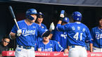 [OSEN=잠실, 지형준 기자] 28일 오후 서울 잠실야구장에서 ‘2023 신한은행 SOL KBO리그’ LG 트윈스와 삼성 라이온스의 경기가 열렸다.1회초 무사 3루에서 삼성 김현준이 구자욱의 1타점 적시타에 홈을 밟고 동료선수들과 기뻐하고 있