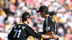 [OSEN=잠실, 이대선 기자] 29일 오후 서울 잠실야구장에서 ‘2023 신한은행 SOL KBO리그’ 두산 베어스와 LG 트윈스의 경기가 열렸다.6회말 무사 1,2루에서 LG 박명근이 두산 강승호를 병살타로 처리하고 미소짓고 있다. 2023.09.29 /sunday@os