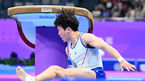 [OSEN=항저우(중국), 김성락 기자] 29일 오후 중국 항저우시 황룽 스포츠센터 체조경기장에서 '제19회 항저우아시안게임' 남자 기계체조 도마 결승전 경기가 열렸다.1차시도 한국 대표팀 신재환이 착지에 실패하고 있다. 2023.09.28 /