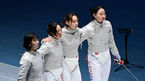 [OSEN=항저우(중국), 최규한 기자] 29일 오후 중국 항저우 전자대학 체육관에서 ‘제19회 항저우 아시안게임’ 여자 사브르 8강전 대한민국과 홍콩의 경기가 열렸다.펜싱 윤지수, 전은혜, 최세빈, 홍하은이 경기에 나서고 있다. 2023