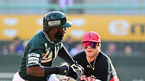 [OSEN=인천, 지형준 기자] 30일 오후 인천 문학동 SSG랜더스필드에서 ‘2023 신한은행 SOL KBO리그’ SSG 랜더스와 KIA 타이거즈의 경기가 열렸다.8회말 1사 1,2루에서 견제에 걸린 SSG 에레디아가 KIA 김선빈에 태그아웃을 당하고 있다. 202