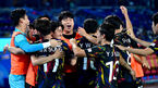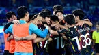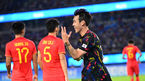 [OSEN=항저우(중국), 최규한 기자] 1일 오후 중국 항저우 황룽 스포츠센터 스타디움에서 ‘제19회 항저우 아시안게임’ 남자축구 8강전 대한민국과 중국의 경기가 열렸다.전반 한국 송민규가 팀 두번째 골을 작렬시키고 동료들과