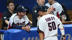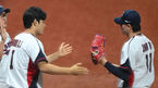 [OSEN=항저우(중국), 김성락 기자] 1일 오후 중국 항저우 사오싱 야구체육문화센터에서 '제19회 항저우아시안게임' 야구 대한민국과 홍콩의 경기가 열렸다. 7회초 종료 후 대한민국 장현석이 더그아웃에서 문동주와 기쁨을 나누고