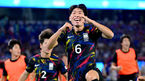 [OSEN=항저우(중국), 최규한 기자] 1일 오후 중국 항저우 황룽 스포츠센터 스타디움에서 ‘제19회 항저우 아시안게임’ 남자축구 8강전 대한민국과 중국의 경기가 열렸다.전반 한국 홍현석이 프리킥 선제골을 작렬시킨 뒤 동료들