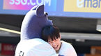 [OSEN=인천, 지형준 기자] 1일 오후 인천 문학동 SSG랜더스필드에서 ‘2023 신한은행 SOL KBO리그’ SSG 랜더스와 KIA 타이거즈의 경기가 열렸다.배우 이정하가 시구를 준비하며 랜디와 포옹을 하고 있다. 2023.10.01 /jpnews@osen.co.kr