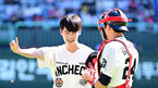 [OSEN=인천, 지형준 기자] 1일 오후 인천 문학동 SSG랜더스필드에서 ‘2023 신한은행 SOL KBO리그’ SSG 랜더스와 KIA 타이거즈의 경기가 열렸다.배우 이정하가 시구를 마치고 SSG 김민식과 인사를 나누고 있다. 2023.10.01 /jpnews@osen.co.kr