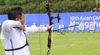 [OSEN=항저우(중국), 김성락 기자] 2일 오전 중국 항저우 푸양 인후 스포츠센터에서 '제19회 항저우아시안게임' 양궁 리커브남자 단체 16강전 대한민국과 북한의 경기가 열렸다.대한민국 오진혁이 활시위를 당기고 있다. 2023.10.02 /