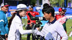 [OSEN=항저우(중국), 김성락 기자] 2일 오전 중국 항저우 푸양 인후 스포츠센터에서 '제19회 항저우아시안게임' 양궁 리커브 혼성 16강전 대한민국과 타지키스탄의 경기가 열렸다.대한민국 임시현, 이우석이 과녁을 확인 후 미소짓