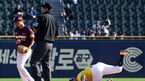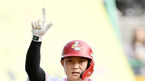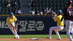 [OSEN=잠실, 조은정 기자]3일 오후 서울 잠실야구장에서 ‘2023 신한은행 SOL KBO리그’ 두산 베어스와 키움 히어로즈의 경기가 열렸다.5회초 키움 선두타자 박수종이 유격수 실책으로 출루한 뒤 기뻐하고 있다. 2023.10.03 /cej@osen.co.kr