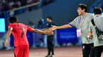 [OSEN=항저우(중국), 김성락 기자] 4일 오후 중국 항저우 올림픽 스포츠센터에서 ‘제19회 항저우 아시안게임’ 육상 남자 높이뛰기 결승전이 열렸다.대한민국 우상혁이 2.37m 1차 시도에 실패한 뒤 아쉬워하고 있다. 2023.10.04 / ksl0919