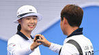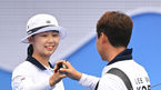 [OSEN=항저우(중국), 김성락 기자] 4일 오후 중국 항저우 푸양 인후 스포츠센터에서 '제19회 항저우아시안게임' 양궁 리커브 혼성 8강 대한민국과 베트남의 경기가 열렸다.대한민국 임시현, 이우석이 경기를 펼친 뒤 기쁨을 나누고