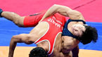 [OSEN=항저우(중국), 최규한 기자] 4일 오전 중국 항저우 린안 스포츠문화전시센터 ‘2022 항저우 아시안게임’ 남자 레슬링 그레코로만형 60㎏급 8강 경기가 열렸다.한국 정한재가 공격을 펼치고 있다. 2023.10.04 / dreamer@osen.co.kr