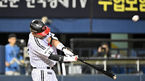 [OSEN=잠실, 민경훈 기자] 6일 오후 서울 잠실야구장에서 ‘2023 신한은행 SOL KBO리그’ LG 트윈스와 KIA 타이거즈의 경기가 열렸다.2회말 무사 주자 1,3루 LG 박동원이 우익수 희생플라이로 선취타점을 올리고 있다. 2023.10.06 / rumi@osen.co
