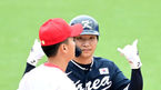 [OSEN=항저우(중국), 최규한 기자] 6일 오후 중국 항저우 사오싱 야구장에서 ‘2022 항저우 아시안게임’ 야구 슈퍼라운드 2차전 대한민국과 중국의 경기가 열렸다.8회초 2사 1, 2루 상황 한국 문보경이 달아나는 2타점 2루타를 날리