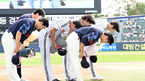 [OSEN=잠실, 조은정 기자] 9일 오후 서울 잠실야구장에서 ‘2023 신한은행 SOL KBO리그’ 두산 베어스와 롯데 자이언츠의 경기가 열렸다.경기 전 항저우 아시안게임에서 금메달을 획득한 롯데 윤동희, 나균안, 박세웅, LG 정우영, 고우