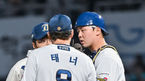 [OSEN=창원, 박준형 기자] 19일 오후 창원NC파크에서 ‘2023 KBO 포스트시즌 와일드카드 결정전 1차전 두산 베어스와 NC 다이노스의 경기가 열렸다.2회초 두산 김인태의 1타점 적시 2루타때 NC 김형준 포수가 선발투수 태너와 이야기를