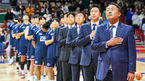 [OSEN=부산, 이석우 기자] 22일 부산 사직체육관에서 2023-2024 정관장 프로농구 부산 KCC와 서울 삼성의 경기가 열렸다. 부산 KCC 전창진 감독과 선수들이 부산 사직체육관 홈 첫 경기에서 국민의례를 하고 있다. 2023.10.22 / foto0307@osen.co
