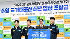 [OSEN=지형준 기자] 24일 오전 서울 방이동 올림픽파크텔에서 대한수영연맹 아시안게임 포상금 수여식이 열렸다.다이빙 국가대표 김영남(왼쪽부터), 우하람, 이재경이 대한수영연맹 정창훈 회장과 기념촬영을 하고 있다. 2023.10.24