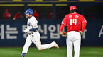 [OSEN=창원, 민경훈 기자] 25일 오후 창원NC파크에서 2023 KBO 준플레이오프 NC 다이노스와 SSG 랜더스의 3차전 경기가 열렸다.3회초 1사 주자 만루 SSG 최지훈이 유격수 앞 병살타를 때리고 있다. 2023.10.25 / rumi@osen.co.kr