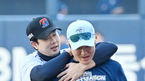 [OSEN=조은정 기자] 25일 오후 창원NC파크에서 2023 KBO 준플레이오프 NC 다이노스와 SSG 랜더스의 3차전 경기가 열릴 예정인 가운데 경기 전 그라운드 훈련이 진행됐다.NC 박건우와 박민우가 그라운드 위에서 장난을 치고 있다. 2023.10.2