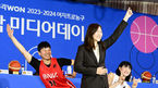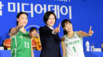 [OSEN=지형준 기자] 30일 오후 서울 강남구 청담동 리베라호텔에서 ‘우리은행 우리WON 2023-2024 여자프로농구’ 개막 미디어데이가 열렸다.BNK 썸 진안, 박정은 감독, 이소희가 포토타임을 하고 있다. 2023.10.30 /jpnews@osen.co.kr