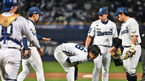 [OSEN=창원, 이석우 기자] 3일 창원 NC파크에서 2023 신한은행 SOL KBO 포스트시즌 플레이오프 NC 다이노스와 KT 위즈의 4차전 경기가 열렸다. NC 다이노스 이용준이 7회초 KT 위즈 황재균의 강습 타구에 맞고 괴로워하고 있다. 2023.11.03 / f