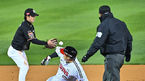 [OSEN=잠실, 김성락 기자] 7일 오후 서울 잠실야구장에서 '2023 KBO 프로야구 포스트시즌 한국시리즈 1차전' LG 트윈스와 KT 위즈의 경기가 열렸다.2회초 무사 1,2루 KT 문상철의 병살타 때 3루로 LG 오지환이 트리플플레이를 성공, 투수