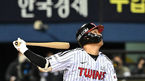 [OSEN=잠실, 이대선 기자] 7일 오후 서울 잠실야구장에서 2023 KBO 프로야구 포스트시즌 한국시리즈 1차전 LG 트윈스와 KT 위즈의 경기가 열렸다.1회말 1사 만루에서 LG 문보경이 희생플라이를 치고 있다. 2023.11.07 /sunday@osen.co.kr
