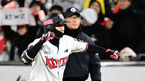 [OSEN=수원, 지형준 기자] 10일 오후 수원 KT위즈파크에서 ‘2023 신한은행 SOL KBO 포스트시즌 한국시리즈’ 3차전 KT 위즈와 LG 트윈스의 경기가 열렸다.6회초 무사 1루에서 LG 박동원이 역전 투런포를 날리며 염경엽 감독과 기뻐하고