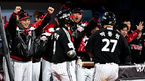 [OSEN=수원, 지형준 기자] 10일 오후 수원 KT위즈파크에서 ‘2023 신한은행 SOL KBO 포스트시즌 한국시리즈’ 3차전 KT 위즈와 LG 트윈스의 경기가 열렸다.6회초 무사 1루에서 LG 박동원이 역전 투런포를 날리며 동료선수들과 기뻐하고