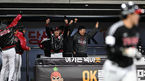 [OSEN=수원, 이대선 기자] 10일 오후 수원 KT위즈파크에서 ‘2023 신한은행 SOL KBO 포스트시즌 한국시리즈’ 3차전 KT 위즈와 LG 트윈스의 경기가 열렸다.5회말 1사 2,3루에서 KT 김민혁의 우중간 적시타 때 홈을 밟은 박병호가 더그아웃