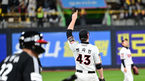[OSEN=수원, 최규한 기자] 10일 오후 수원 KT위즈파크에서 ‘2023 신한은행 SOL KBO 포스트시즌 한국시리즈’ 3차전 KT 위즈와 LG 트윈스의 경기가 열렸다. 1회초 2사 2루 상황 LG 오스틴을 삼진으로 이끌며 실점없이 이닝을 막아낸 KT 선