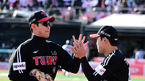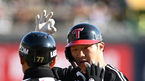 [OSEN=수원, 지형준 기자] 11일 수원 KT위즈파크에서 ‘2023 신한은행 SOL KBO 포스트시즌 한국시리즈’ 4차전 KT 위즈와 LG 트윈스의 경기가 열렸다.1회초 1사 1루에서 LG 김현수가 선제 우월 투런포를 날리며 동료선수들과 기뻐하고 있