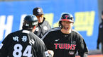 [OSEN=수원, 이대선 기자] 11일 수원 KT위즈파크에서 ‘2023 신한은행 SOL KBO 포스트시즌 한국시리즈’ 4차전 KT 위즈와 LG 트윈스의 경기가 열렸다.1회초 1사 1루에서 LG 김현수가 우월 투런 홈런을 치고 홈에서 환호하고 있다. 2023.11.11