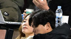 [OSEN=잠실, 지형준 기자] 13일 오후 서울 잠실야구장에서 2023 KBO 프로야구 포스트시즌 한국시리즈 5차전 LG 트윈스와 KT 위즈의 경기가 열렸다.메이저리그 토론토 류현진이 아내 배지현아나운서와 경기를 관람하고 있다. 2023.11.13 /