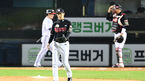 [OSEN=잠실, 조은정 기자]13일 잠실야구장에서 2023 신한은행 SOL KBO 포스트시즌 한국시리즈 LG 트윈스와 KT 위즈의 5차전 경기가 열렸다. 2회말 1사 1루 KT 선발 고영표가 LG 문보경에게 안타 허용 후 아쉬워하고 있다. 2023.11.13 /cej@osen.c