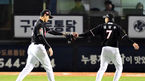 [OSEN=잠실, 지형준 기자] 13일 오후 서울 잠실야구장에서 2023 KBO 프로야구 포스트시즌 한국시리즈 5차전 LG 트윈스와 KT 위즈의 경기가 열렸다.2회말 1사 1,3루에서 KT 고영표가 LG 박동원을 2루땅볼, 병살 처리하며 박경수와 기뻐하