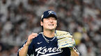 [OSEN=도쿄, 지형준 기자] 류중일 감독이 이끄는 한국야구대표팀이 19일 오후 일본 도쿄돔에서 2023 아시아프로야구챔피언십(APBC) 일본과 결승전을 가졌다. 2회말 2사 만루 위기를 넘긴 대한민국 곽빈이 미소 짓고 있다. 2023.11.18 / jp